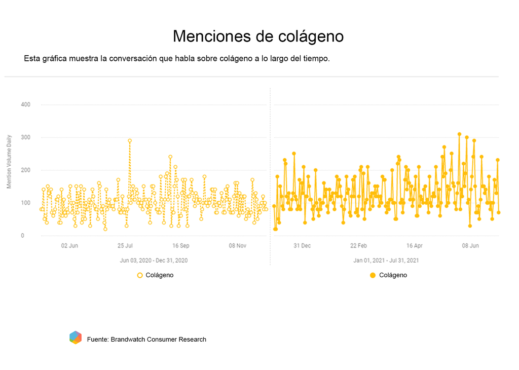 El ingrediente que ocupa el segundo lugar en cuanto a share of voice es el colágeno.