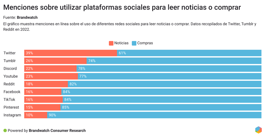 Instagram, Pinterest y TikTok tienen el mayor porcentaje de menciones sobre la utilidad para comprar que el resto de plataformas. Para el consumo de noticias, Twitter es la más usada.