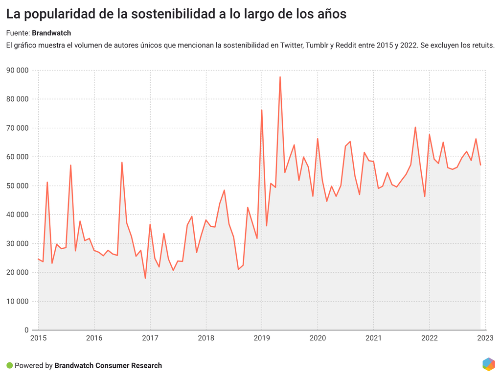 Esta tendencia también se observa en la forma en la que los consumidores hablan de sostenibilidad online.