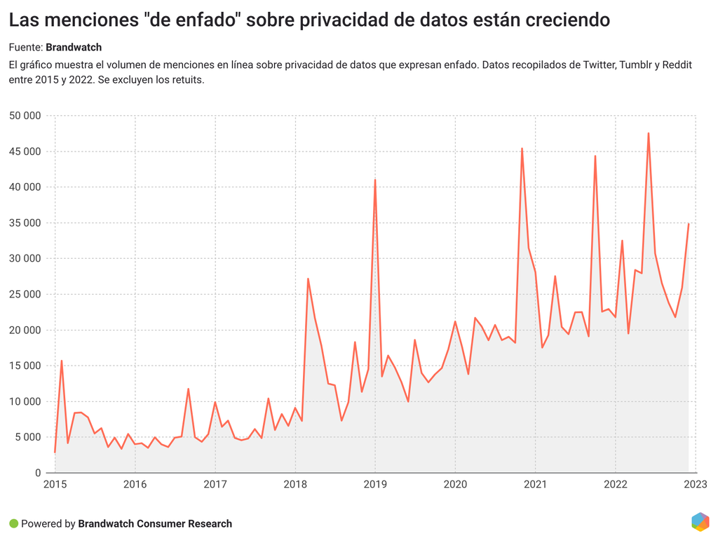 Esta creciente preocupación también se refleja en los datos sobre búsquedas y redes sociales. Según Google Trends, a finales de octubre de 2022 las búsquedas de "privacidad" alcanzaron su nivel más alto en cinco años.