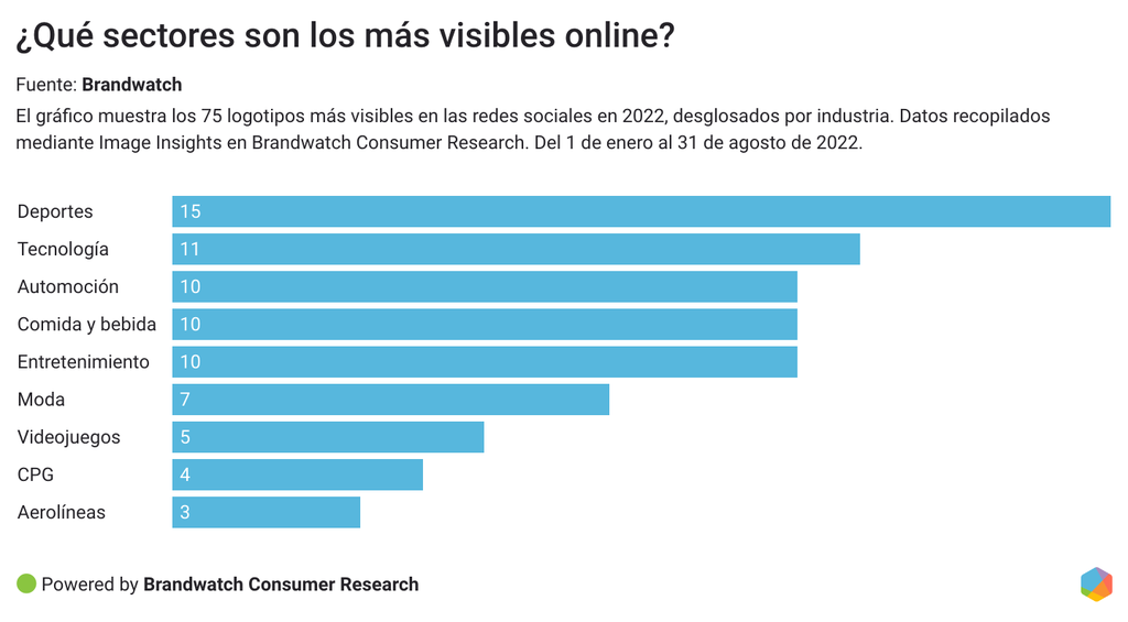 Vamos a echar un vistazo a los sectores con logos muy visibles para ver hasta qué punto la industria puede influir en la visibilidad de marca. Para ello, hemos examinado los 75 logotipos más visibles de nuestro análisis y los hemos dividido por sectores.
