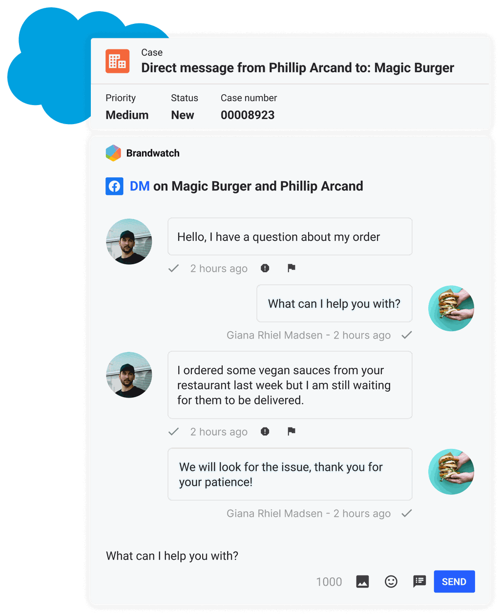 Con la integración de Salesforce en Brandwatch, administra fácilmente los problemas de soporte en redes sociales desde una ubicación centralizada, junto con otras interacciones de los clientes, y para lograr una experiencia de cliente homogénea.Crea casos y registros de contactos a partir de tus mensajes directos, y envíalos directamente desde Brandwatch a Salesforce Service Cloud, tu plataforma de atención al cliente definitiva.