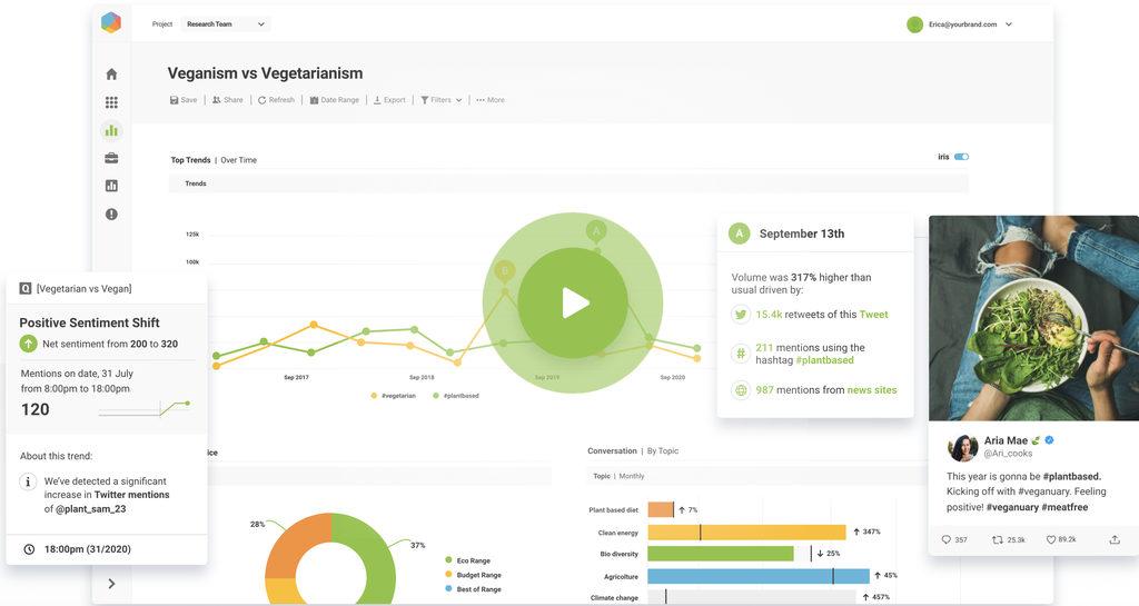 Consumer Research vous donne accès à des insights consommateurs approfondis tirés de 100 millions de sources en ligne et plus d'1,4 millards de posts.