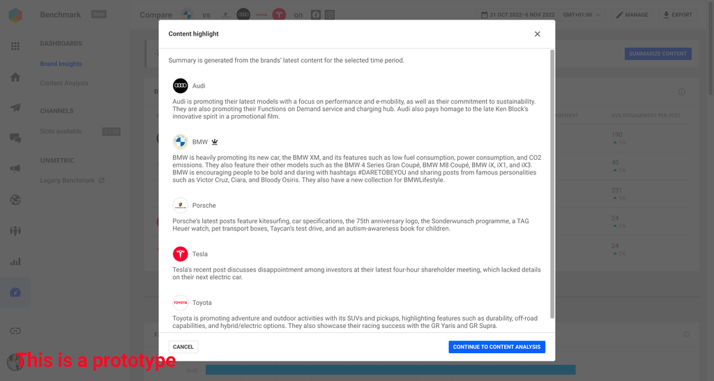 ChatGPT peut avoir des difficultés avec l'arithmétique, donnant en toute confiance des réponses plausibles mais erronées. En revanche, Brandwatch est conçu pour analyser les données à grande échelle et créer des informations à l'aide de l'IA, de statistiques et d'agrégations complexes. Nos nouvelles fonctionnalités combinent le meilleur de ChatGPT et de Brandwatch, de sorte que vous obtenez des informations quantitatives fiables en direct qui sont encore plus faciles à comprendre pour l'utilisateur.
