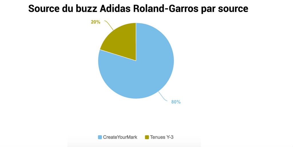 Comme le démontre le graphique ci-dessous, 80 % des discussions en ligne découlent directement de la campagne #CreateYourMark créée par Adidas Tennis.