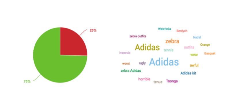Ainsi, en zoomant sur les mentions négatives pour en extraire les thématiques clés, on s’aperçoit que les mentions négatives autour de la marque portent essentiellement sur les tenues zébrées portées par les joueurs créées par Adidas pour Roland-Garros.