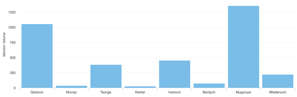 Naturellement, l’espagnole Garbiñe Muguruza qui a remporté le simple dames et qui est sponsorisée par la marque a généré le plus grand nombre de mentions pour Adidas. Plus surprenant, Novak Djokovic, vainqueur du simple messieurs et dont seules les chaussures sont fournies par Adidas se place en deuxième position avec plus de 1 000 mentions associant le joueur et la marque.