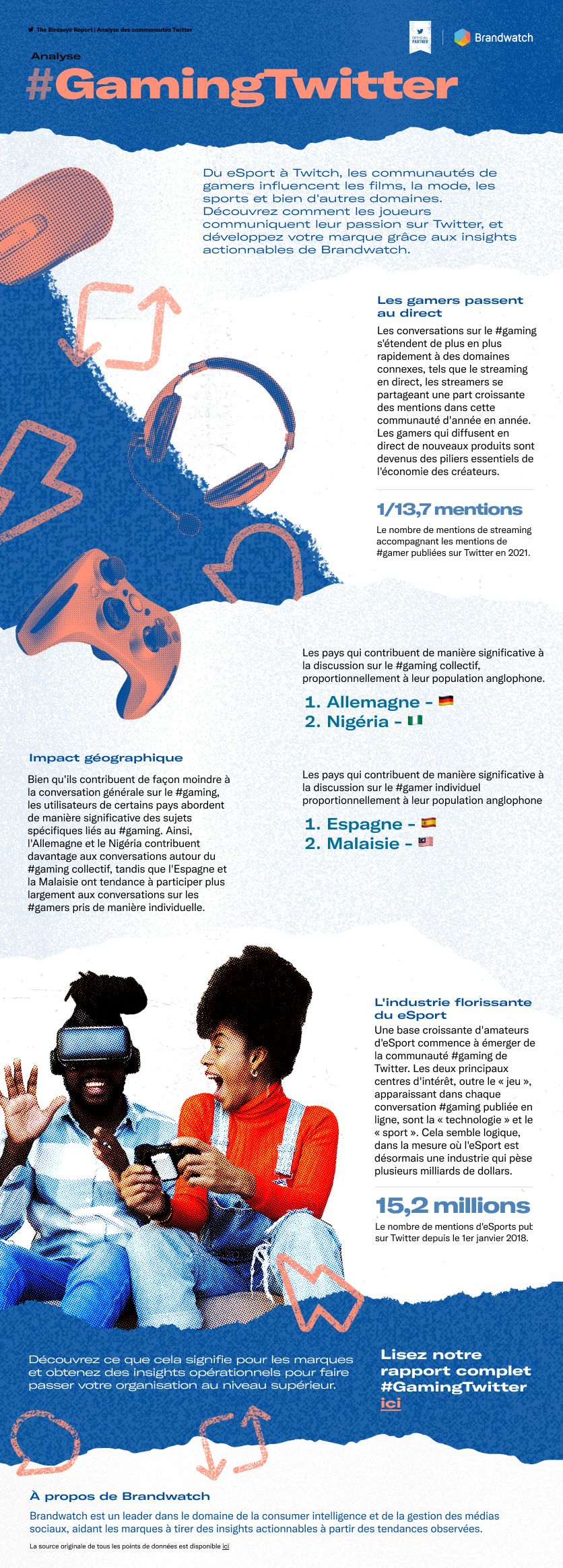 Dans notre dernier rapport Birdseye en collaboration avec Twitter, nous analysons la communauté gaming sur le "réseau à l'oiseau bleu" afin de mieux comprendre ce qui motive les tendances actuelles, comment les joueurs vivent leur passion sur Twitter et comment les marques peuvent exploiter ce marché en pleine croissance grâce aux insights de Brandwatch.