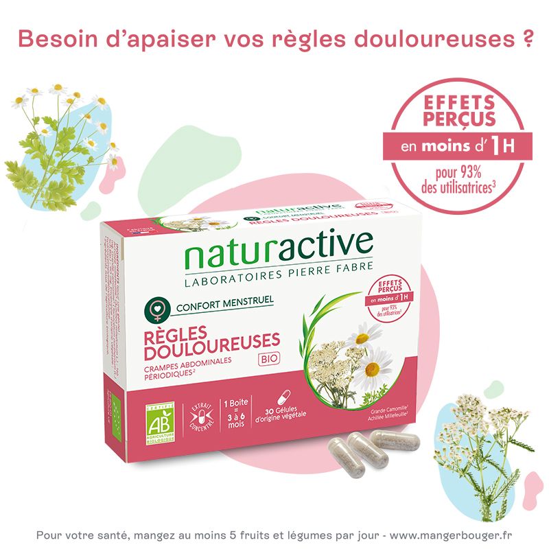 Dès sa sortie en milieu 2021, le produit Naturactive Règles Douloureuses Bio* connaît un franc succès et est même élu produit de l’année en 2022. En croissance sur 2022, il est leader de son marché depuis son lancement : 1 produit sur 2 acheté sur le marché des douleurs menstruelles est un produit Naturactive Règles Douloureuses Bio (source : Openhealth, ventes en volume CAM 12.22) !