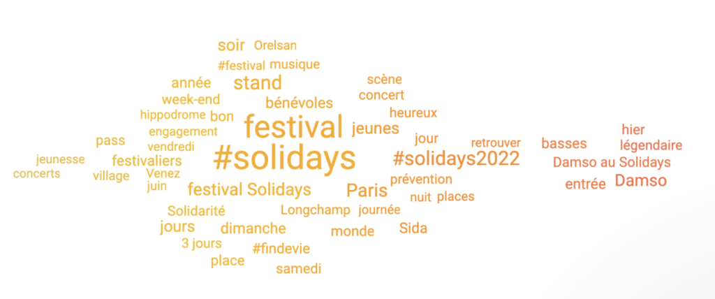 En plus des outils natifs, Solidarité Sida avait besoin (compte tenu du volume important de conversations autour de Solidays) d’obtenir un outil permettant de centraliser ces retours pour pouvoir mieux les analyser, y répondre et obtenir davantage d’informations sur différents aspects du festival et son public.