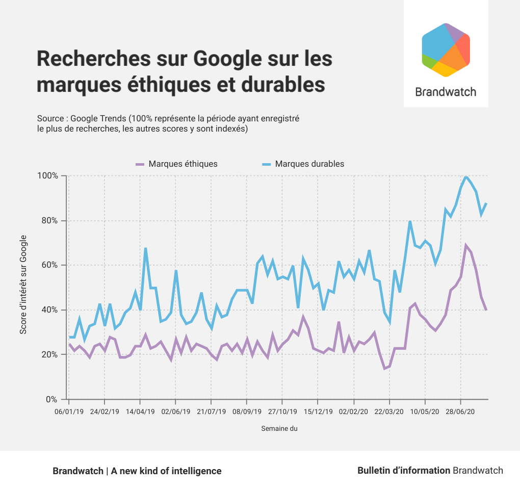 Lorsque nous avons analysé les données de Google Trends, nous avons appris que les consommateurs recherchent activement les marques qui agissent envers des objectifs qui ne sont pas uniquement financiers.