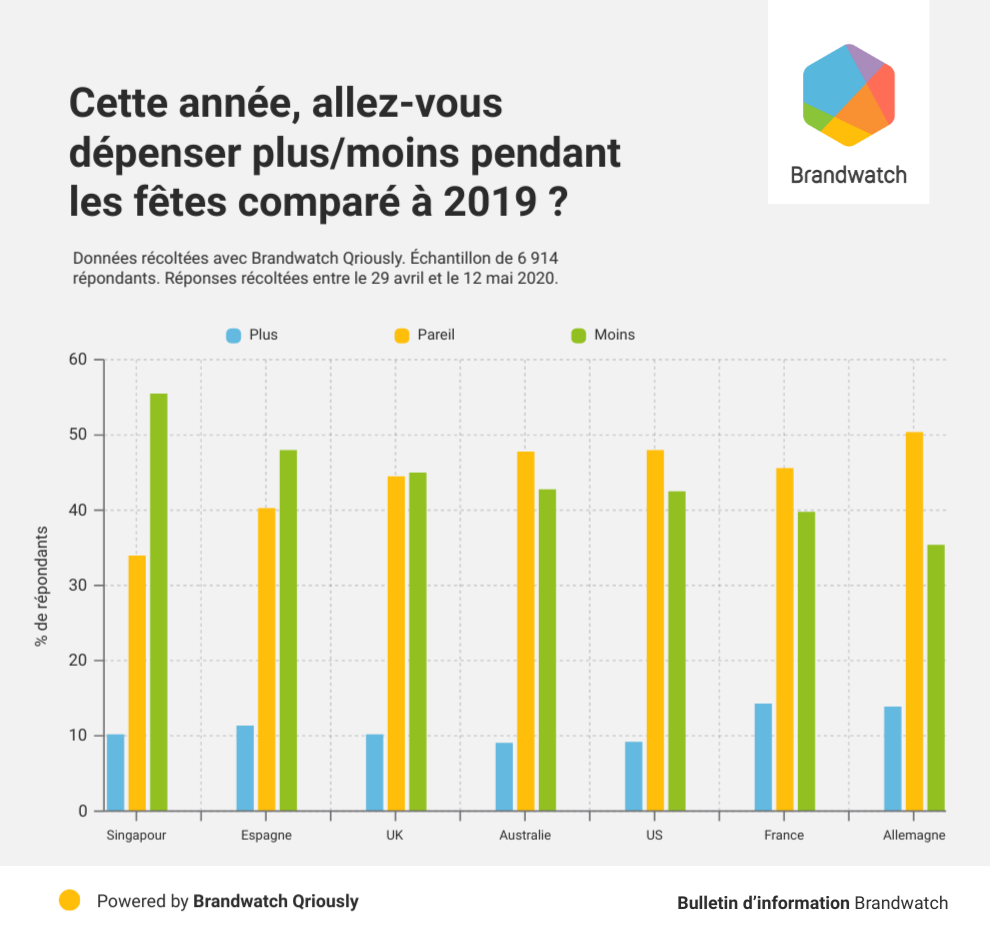 Bonne nouvelle, la France (14.4 %) et l’Allemagne (14 %) ont a les consommateurs les plus optimistes de tous les pays étudiés puisqu’ils sont les plus susceptibles de dépenser plus pendant les fêtes. Avec un bémol tout de même puisque l’option reste très minoritaire. Dans la même enquête, nous avons également demandé aux répondants s’ils avaient économisé plus que d’habitude depuis le début de la pandémie. Curieusement, les répondants français et allemands étaient les moins nombreux à avoir répondu oui.
