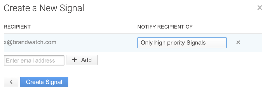 La différence est que les alertes personnalisées recherchent des éléments que vous connaissez peut-être déjà, tandis que Signals détecte des changements dans les données que vous n’auriez peut-être jamais pu prévoir ou prédire. Notre technologie analyse vos données en temps réel et envoie automatiquement un email d’alerte à vos destinataires dès qu’elle détecte des changements significatifs ou soudains dans vos data, tels que des trending stories, des posts d’auteurs tendance ou des changements de sentiments.