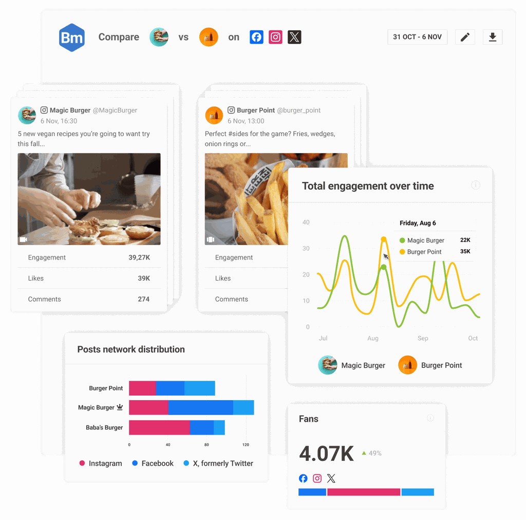 Identifiez les forces et faiblesses de votre marque, observez les stratégies marketing de vos concurrents et comparez vos performances pour améliorer votre stratégie.