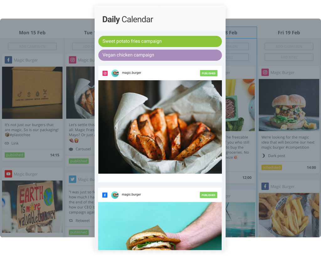 Des posts quotidiens aux campagnes à grande échelle, notre calendrier de médias sociaux vous aide à rester organisé et productif. De plus, vos ressources visuelles sont facilement optimisées pour s'adapter à toutes les plateformes sociales.