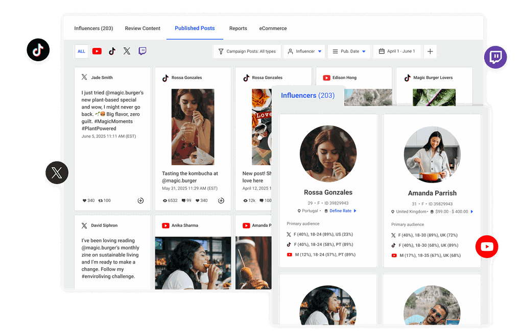 Tirez parti du marketing d'influence sur TikTok, Instagram, YouTube, et plus encore.