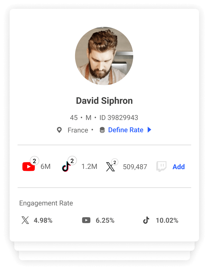 L'outil de découverte d'Influence recense plus de 65 millions de créateurs de contenu dans le monde, ce qui permet de trouver facilement les bons influenceurs pour vos campagnes.