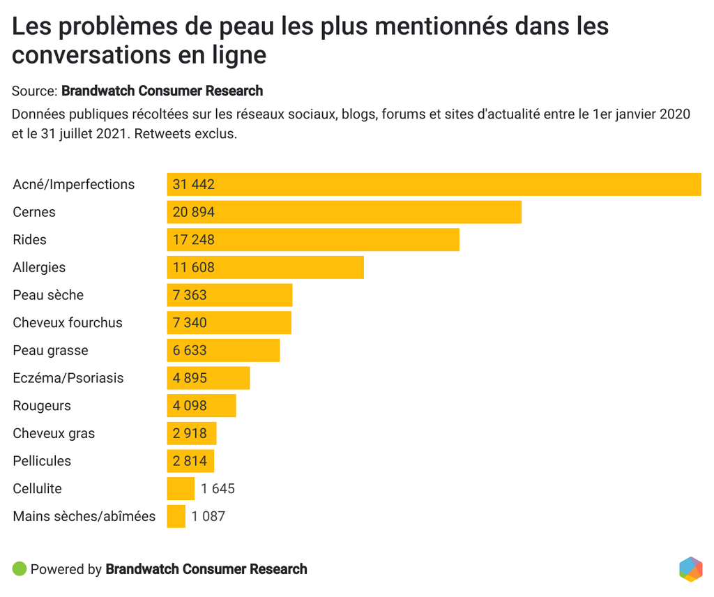 Les problèmes de peau les plus mentionnés dans les conversations de consommateurs