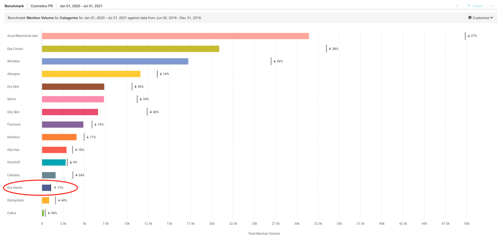 Tout comme en France, l'étude allemande a également observé une augmentation des conversations sur les mains sèches et abîmées. En outre, selon Google Trends, le terme « gel hydroalcoolique » a atteint son apogée au cours de la deuxième semaine du mois de septembre 2020, en France et en Espagne.