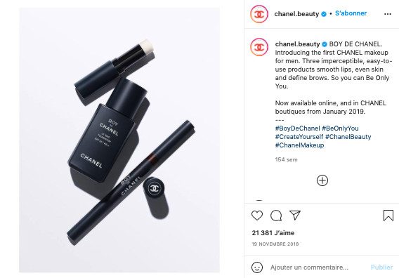 La croissance de l'audience masculine pour le secteur cosmétique est une tendance qui ne peut plus être ignorée par les marques. Certaines ont d'ailleurs lancé des gammes entièrement dédiées aux hommes comme Chanel avec Boy de Chanel.