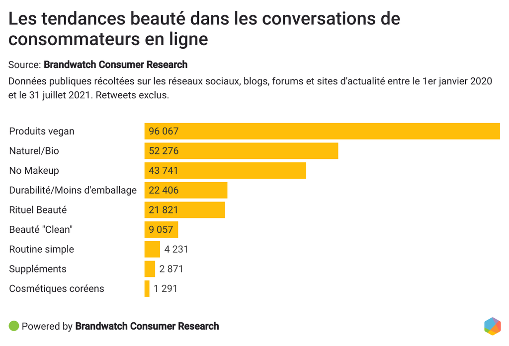 Pour mener à bien cette recherche, à l'aide de notre solution de Social Listening Brandwatch Consumer Research, nous avons analysé près de 2 millions de conversations publiques en français postées en ligne sur les réseaux sociaux, blogs, forums et sites d'actualités entre le 1er janvier 2020 et le 31 juillet 2021.