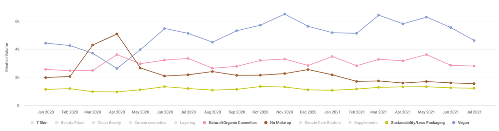 On constate une prise de conscience qui vise à prendre soin de soi tout en respectant sa peau et l'environnement prend de l'ampleur. D'ailleurs de nombreuses conversations sur le secteur cosmétique consistent à un partage d'opinion sur le sujet, témoignages ou encore de recommandations de marques ou de produits vegan.