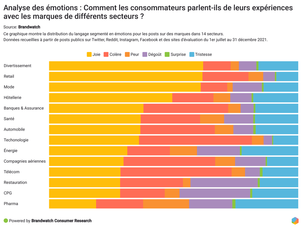 - Les émotions que les consommateurs partagent le plus fréquemment dans différents secteurs