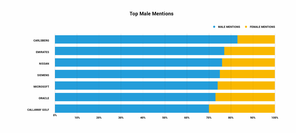 Une fois ces entreprises et agences rassemblées, nous les avons classées en fonction du volume d’images sur lesquelles elles apparaissaient, sur Twitter et Instagram. Nous avons alors réalisé le top 100 des marques et entamé une analyse supplémentaire.