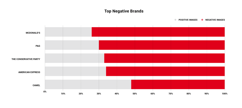 Le produit Brandwatch Image Insights est le meilleur du marché, cette plateforme est capable rechercher n’importe quel logo dans n’importe quelle photo. Nous avons utilisé cette technologie pour chercher parmi 100 millions d’images et identifier les logos qui apparaissent le plus souvent.