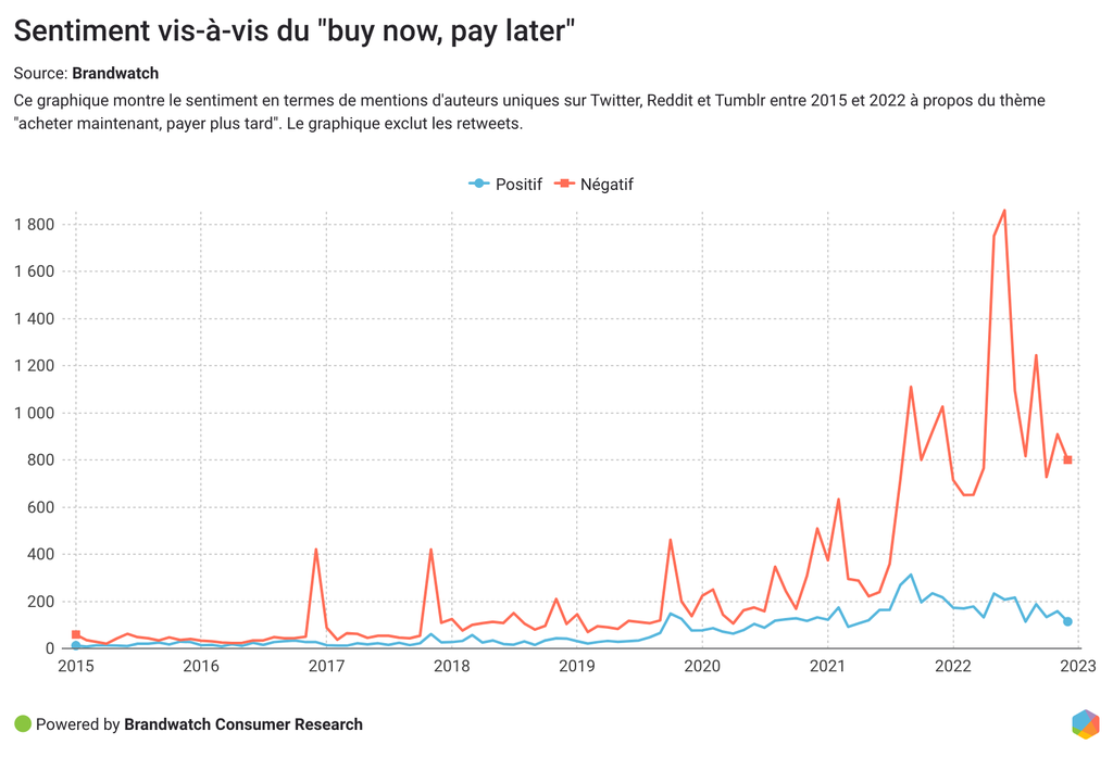 L'essor de popularité du paiement différé a suscité une foule de sentiments négatifs dans les conversations en ligne, ceux-ci atteignant leur pic en juin 2022.