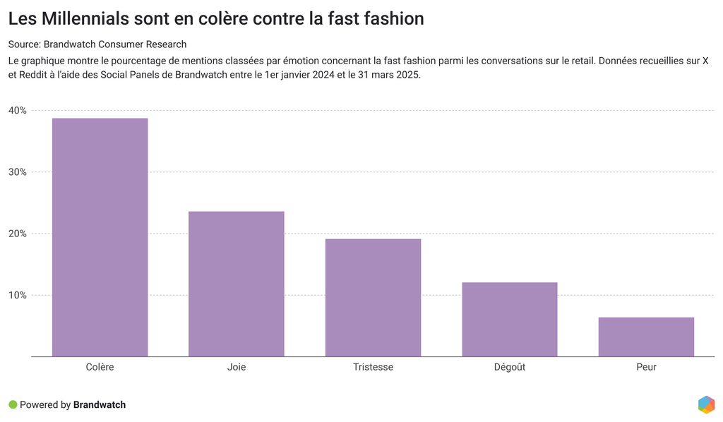 Et la fast fashion est non seulement un sujet de discussion majeur pour cette génération, mais également une question qui leur tient à cœur. Ils détiennent le pourcentage de mentions négatives le plus élevé, toutes générations confondues.