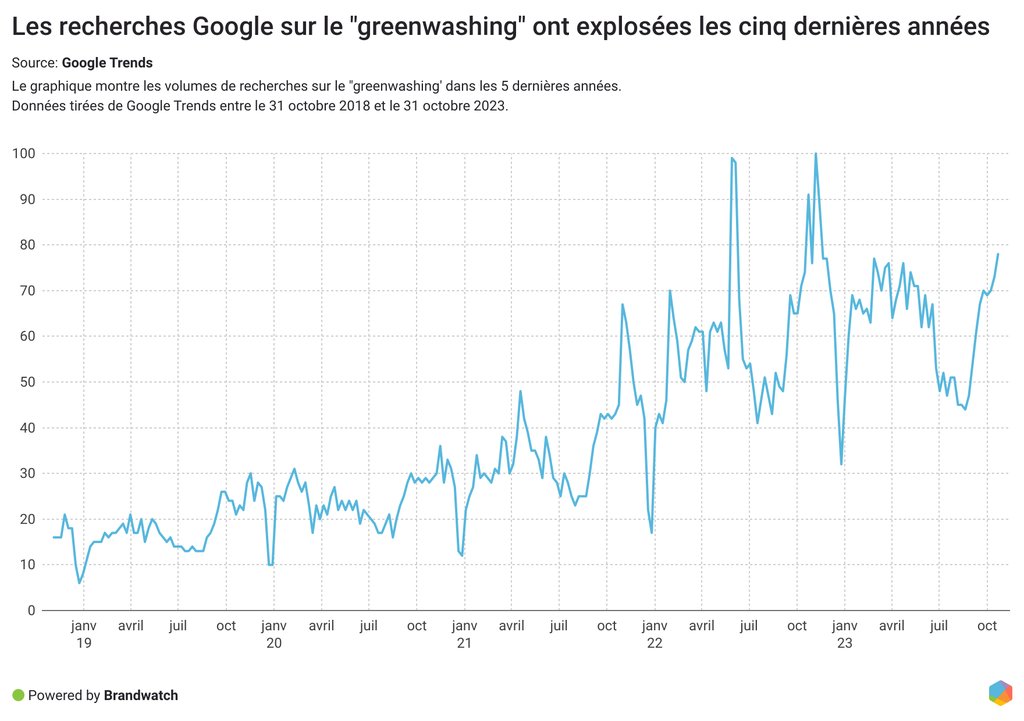 Une recherche rapide sur le « greenwashing » sur Google Trends a révélé une utilisation en croissance rapide du terme en ligne.