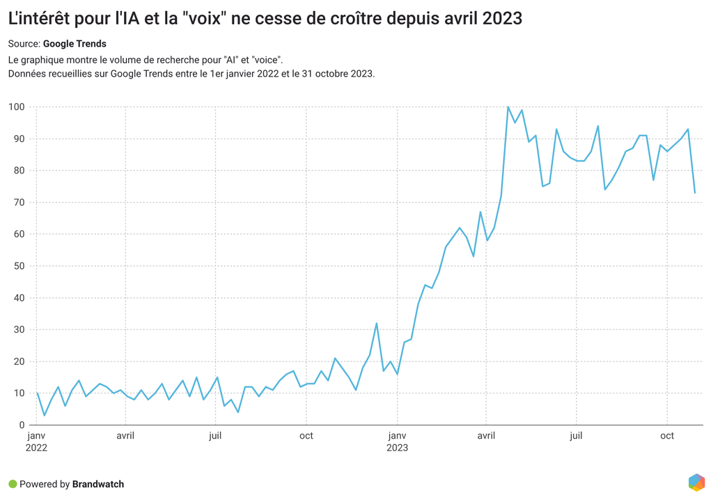 Comme l'une des personnes interrogées dans notre enquête, Lauren Howell, spécialiste des réseaux sociaux et des relations publiques chez Simply Media and Advertising, LLC, l'a prédit, « l'IA jouera un rôle encore plus complexe dans la stratégie des réseaux sociaux et améliorera l'expérience client en adoptant le ton du client. Nous expérimentons même l'IA pour « cloner un client » pour des voix off et du contenu. » (Source : enquête sur les tendances du marketing digital de Brandwatch, 2023.)