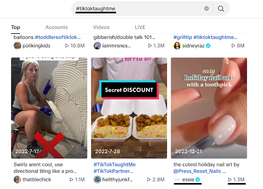 Les publics l'utilisent pour trouver des activités locales, découvrir des marques, trouver des recommandations de restaurants et même se renseigner sur les actualités du monde. Le hashtag #TiktokTaughtMe a à lui seul plus de 14 milliards de vues : les gens apprennent des réseaux sociaux et ce de manière encore jamais vue jusqu'à aujourd'hui.
