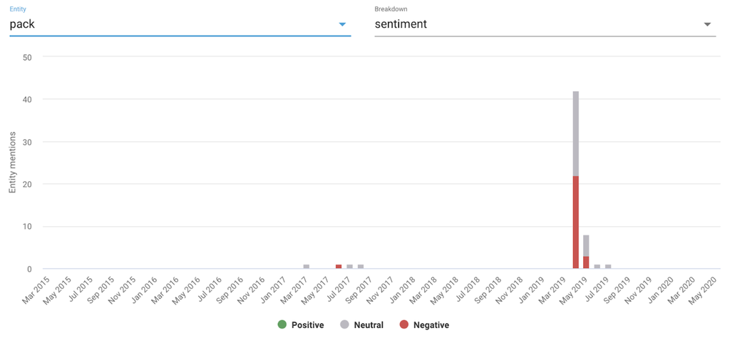 When we click into the entity “pack”, we can see that it hasn’t been mentioned at all since last spring.