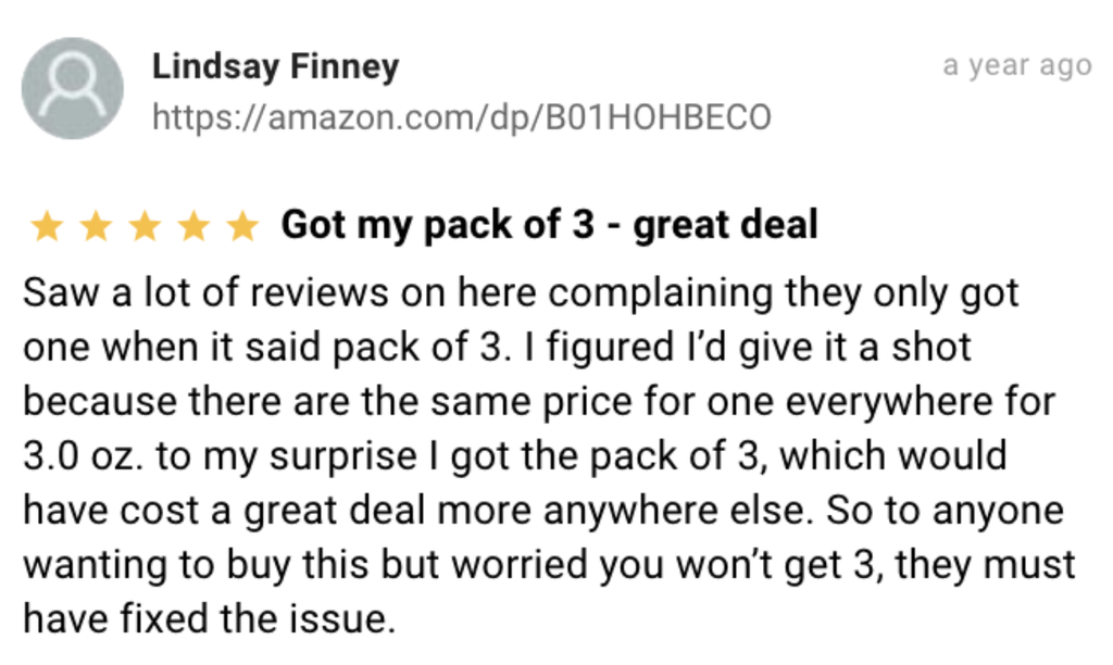 The company fixed the description and added clear options for packs of one and packs of three. One star ratings subsequently plummeted.