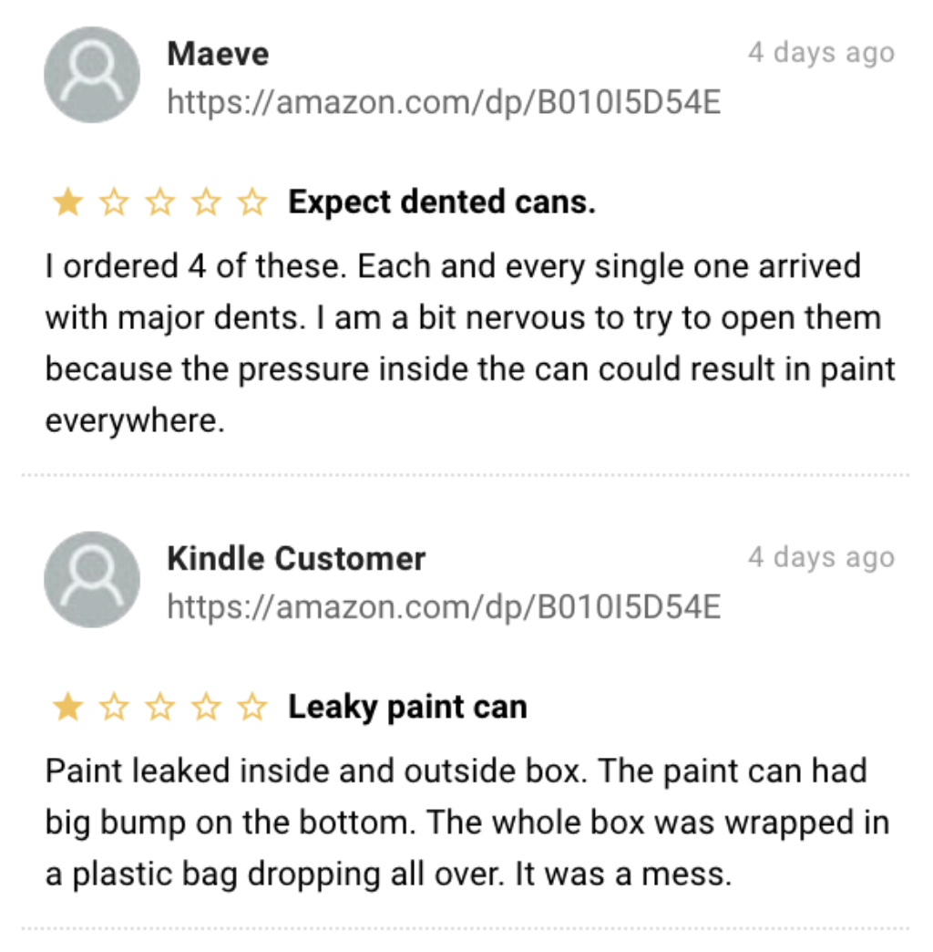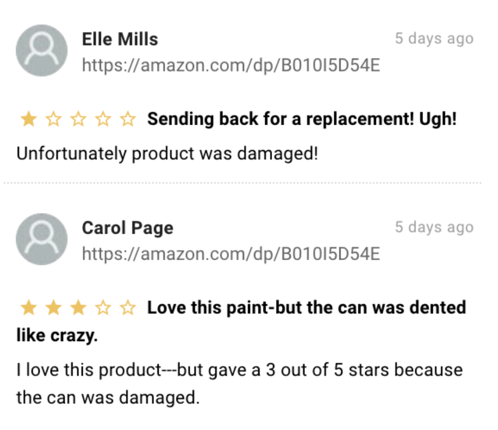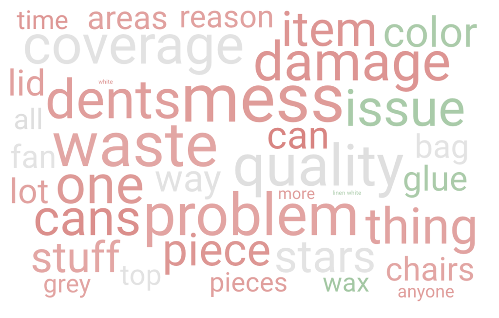 For example, when we looked into reviews of a popular paint brand, we saw that the topics driving negativity included “damage”, “mess”, and “dents.” The product itself isn’t the issue – it’s the way it’s packed.