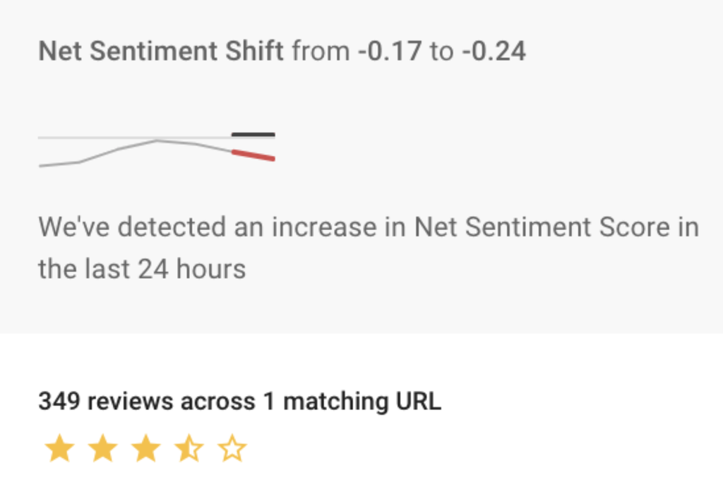 Today, just by opening up Brandwatch Reviews, we can see there has been a net sentiment decrease for this multi-surface cleaner over the past 24 hours.