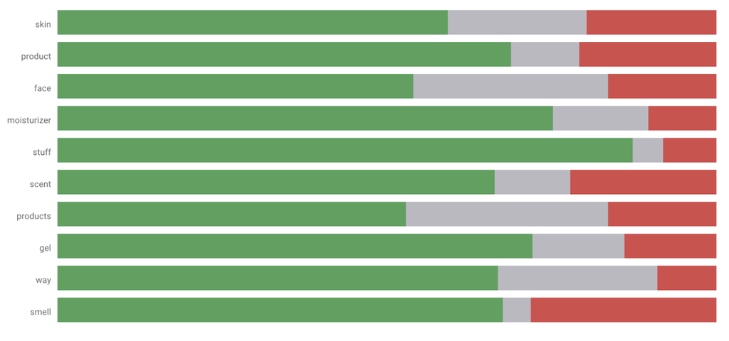 Looking at a popular moisturizing lotion, we found that one particular competitor was being mentioned in many of the reviews. The products were clearly being compared side-by-side by consumers.