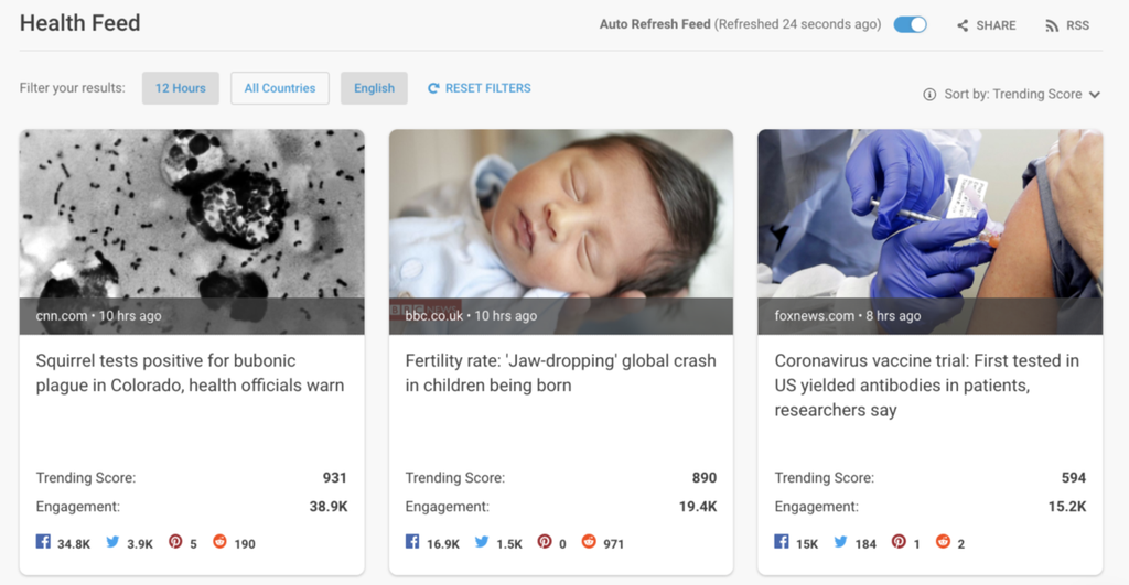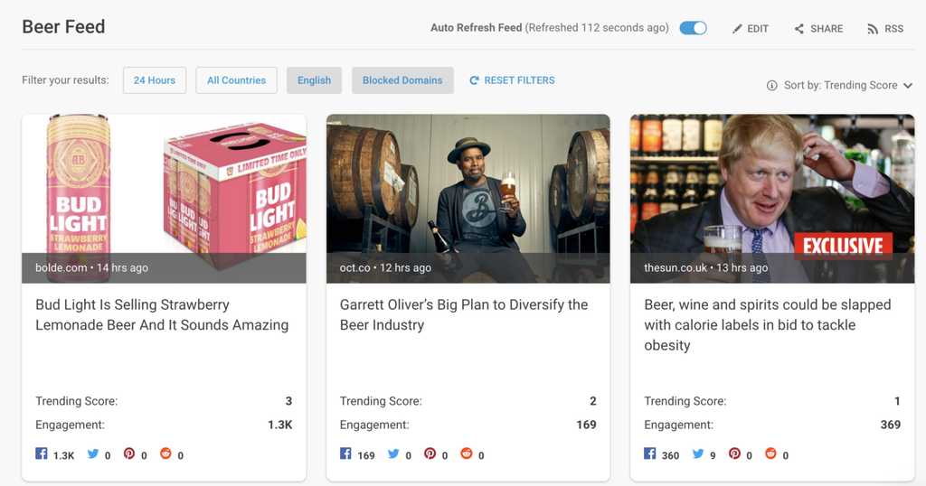 You can also create custom feeds of trending content in areas that are particularly interesting to your business.