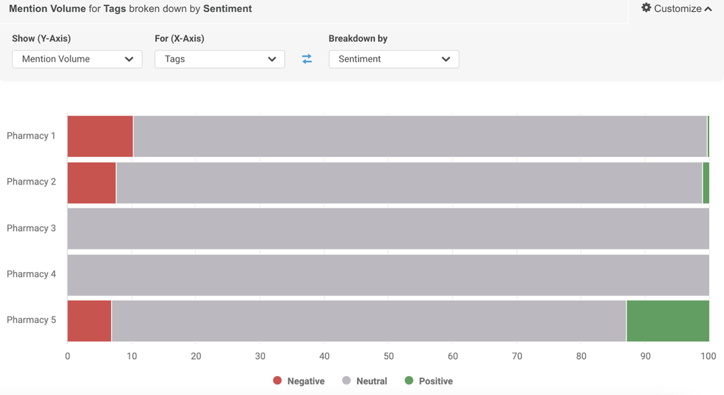 An additional way to explore insights around your brand, topic, or industry is by doing sentiment analysis and digging into the positive and negative discussion drivers. Any recurring themes discovered through this broad market analysis are worth monitoring on a regular basis to help protect your brand from a misstep or to address pain points.