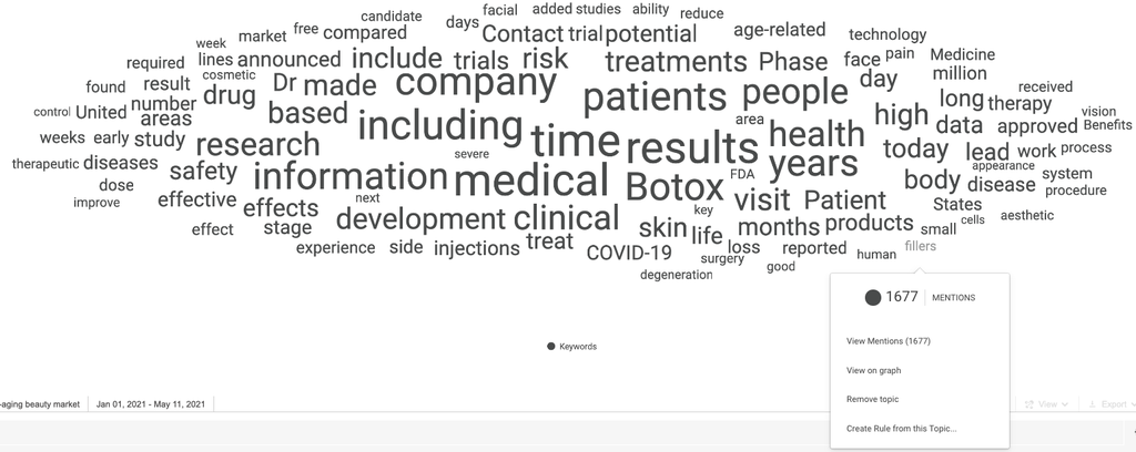 If researchers wanted to learn more about fillers in conversations related to the anti-aging market, they could zoom in on this topic by creating a tag and building a rule around it.