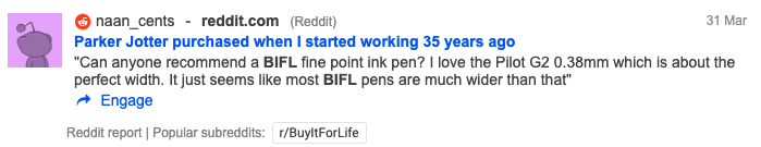 Let’s start by analyzing the buy-it-for-life community.