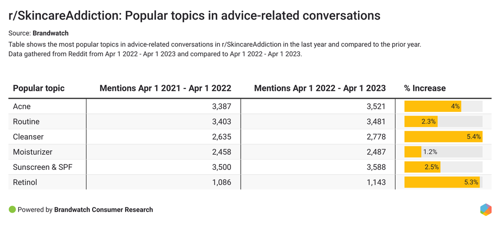 We looked at the topics consumers discussed the most in r/SkincareAddiction, and how that conversation compared to the previous year.