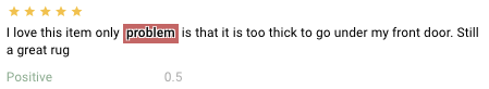 In this case, the word “problem” in red pointed us to a review that gave Target’s product 5-stars but also revealed a valuable insight: the thickness of the product may not work with every exterior door.