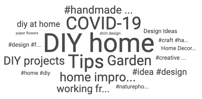 We used Brandwatch Consumer Research to visualize different topics of conversation around DIY and home improvement. As shown in the Word Cloud below, ‘DIY home’, ‘DIY projects’, ‘garden’, ‘design ideas’, and ‘handmade’ saw the most conversation last year.