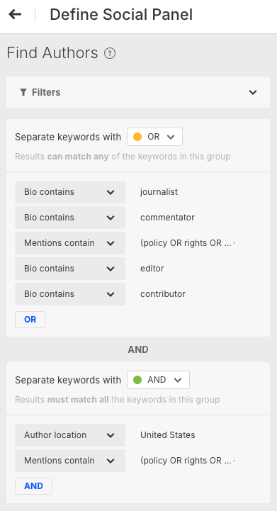 Brandwatch’s Social Panels is another effective method for tracking influential voices on Reddit and X. By building audience panels based on bio keywords, discussion topics, or key subreddits, agencies can better understand who is shaping critical conversations relevant to their work.
