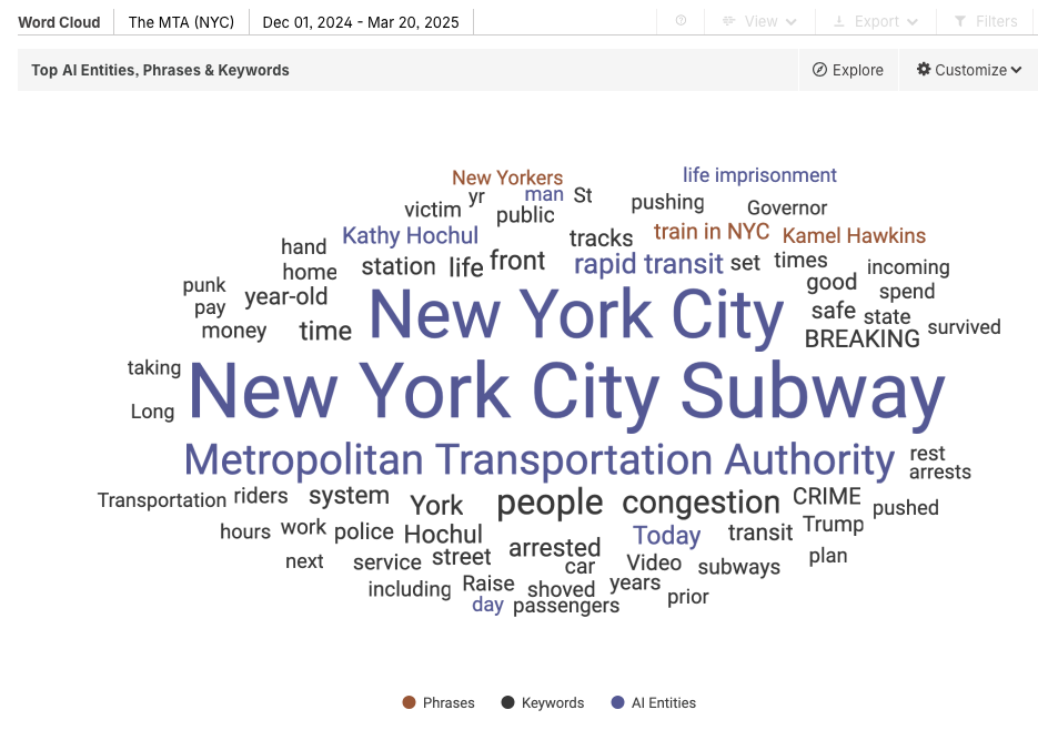 A word cloud offers a quick snapshot of the most frequently discussed topics, but not every word is equally useful. While terms like “New York City Subway” are expected and too broad to be insightful, other words can reveal deeper narratives worth exploring.