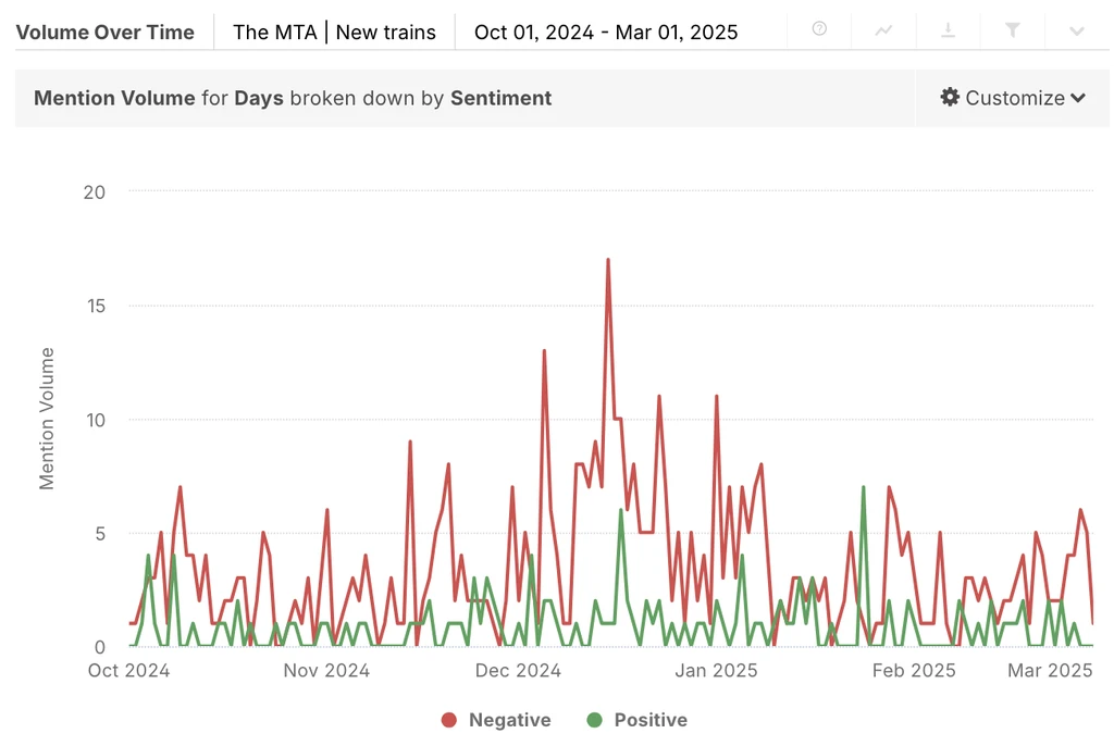 For example, the MTA could address the negative spike in discussions about the new cars by providing more detail on the design, and how it addresses accessibility concerns raised by riders.