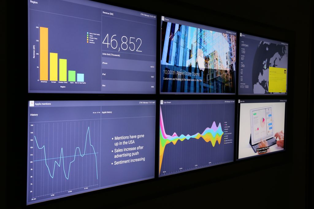 A number of our clients use Vizia as a key performance indicator (KPI) display. For sales and marketing, the result is an instant dashboard broadcasting the landscape of online conversations, powered by Brandwatch Analytics, alongside realtime business data, powered by Salesforce among other data sources. The effect is that it’s easier to understand how each piece plays into the next – how every effort supports the the greater goals.